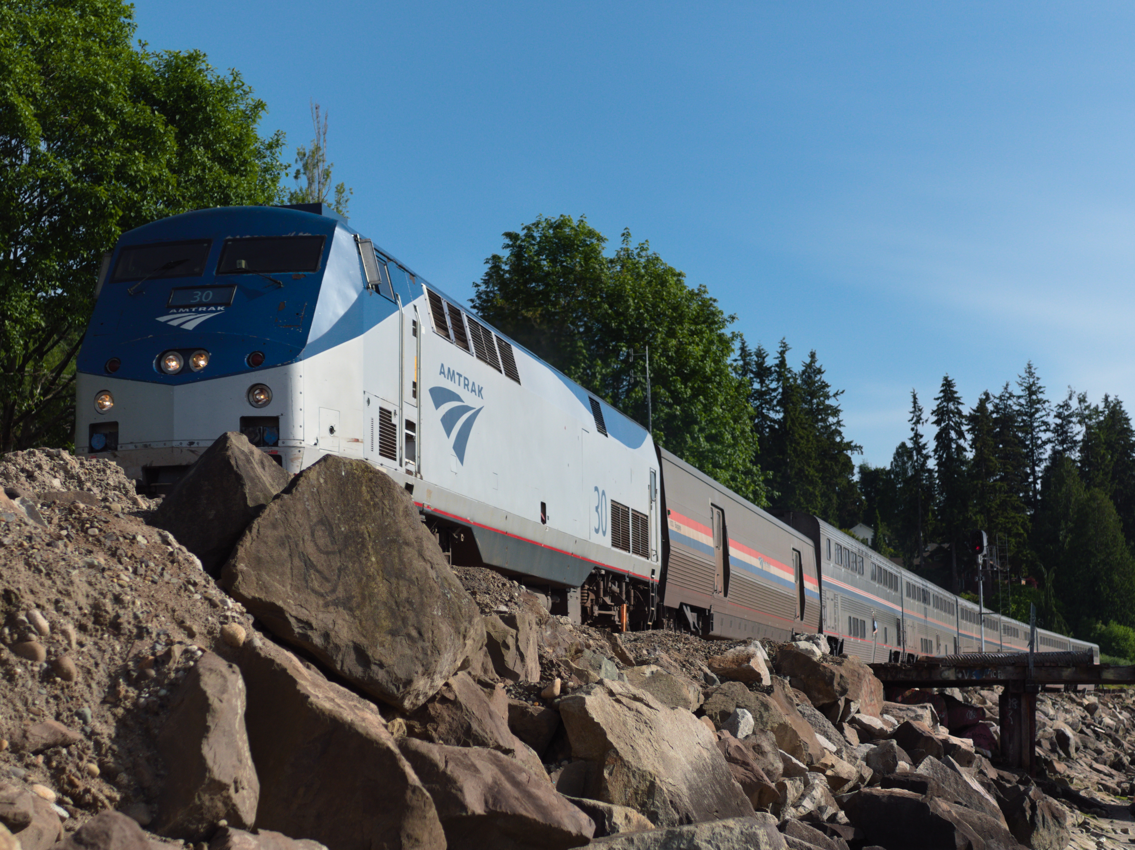 Took a walk on the beach. Brought the 35-100 f/2.8 and the 25 f/1.7. Got a couple great foamer shots - one of the Sounder commuter rail and one of (presumably?) the Amtrak Cascades headed to Vancouver, BC.