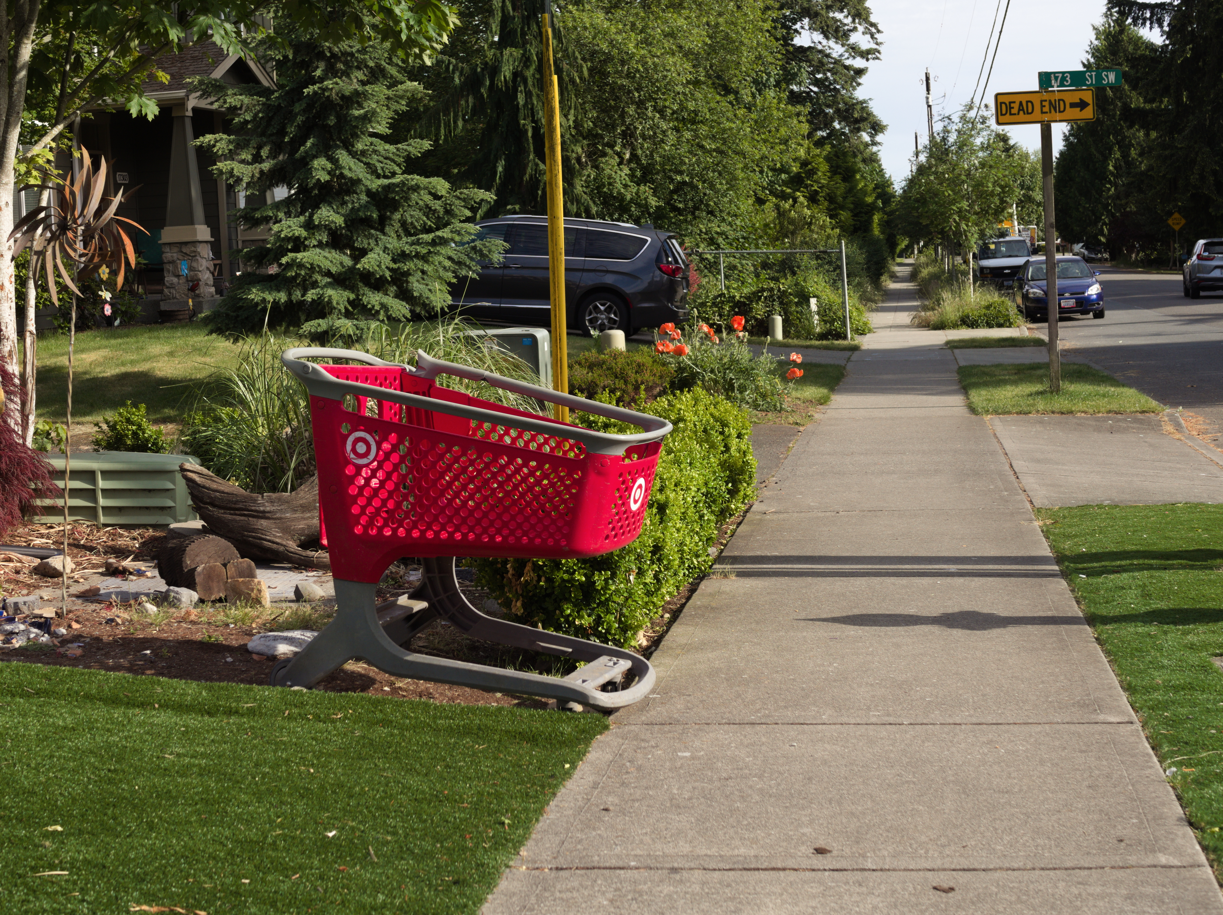 The photo of the Target cart was taken from the hip, while walking. Flip-up screen is nice for that.