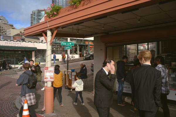 I think this hits the chaos of Pike & Pine during the lunch rush perfectly. Like, why are those guys wearing tuxedos and looking vaguely hung-over? Is that dude playing piano? Why on god’s green earth does this street have cars on it?